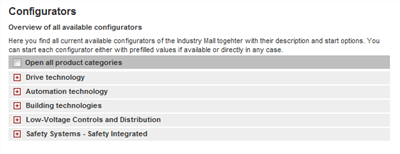 Encuentre el configurador apropiado para seleccionar su producto. Utilice el configurador para generar soluciones complejas y técnicamente avanzadas.