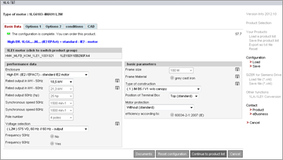en la parte superior izquierda o en el botón Display technical data & order en la parte inferior derecha.