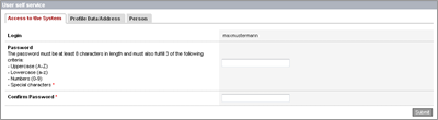 - Haga click en la pestaña Access to the System. Introduzca y confirme la nueva contraseña.